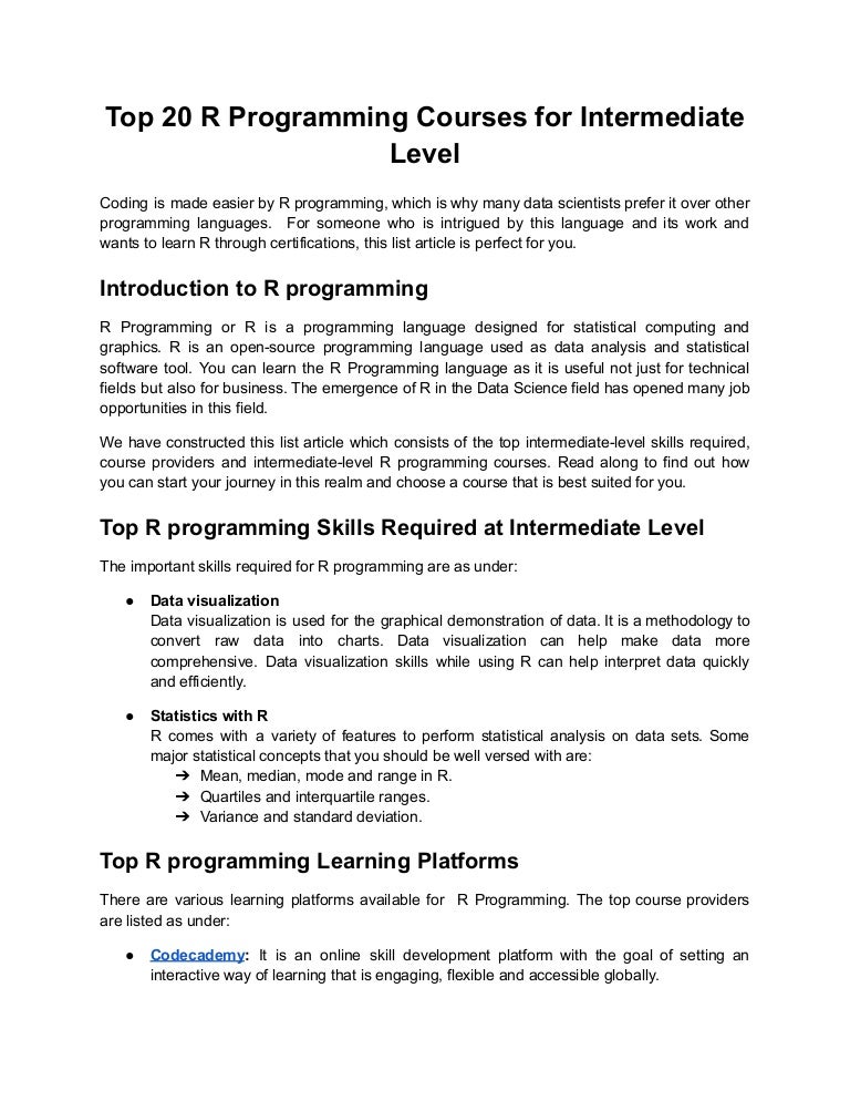 R Programming Intermediate Level Pdf